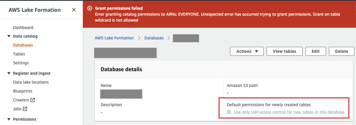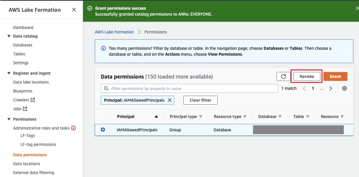 혹시 초기 설정시 IAMAllowedPrincipals 권한이 있다면