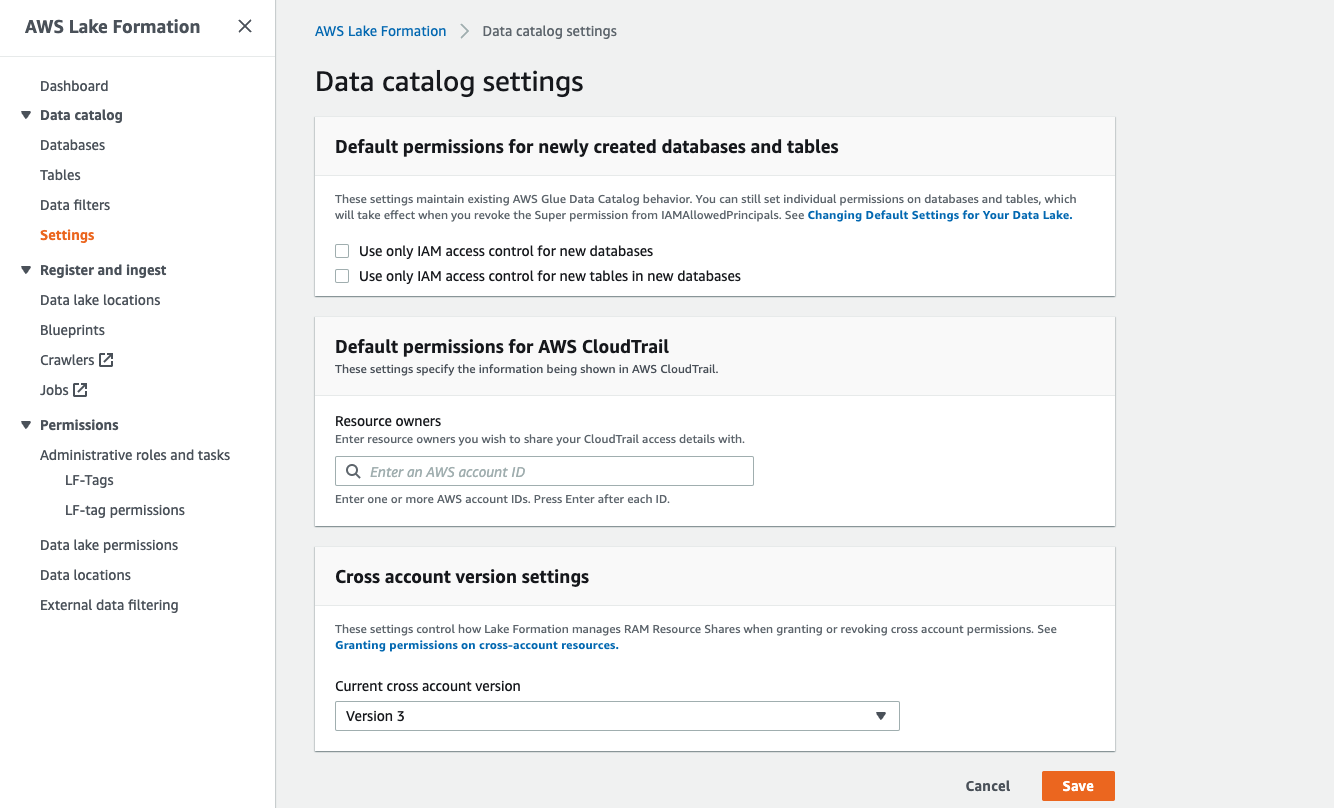 LakeFormation을 통하면 한번에 관리가 가능하다.