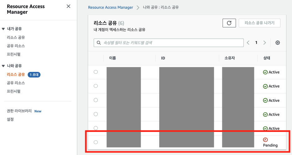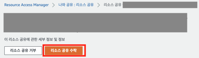 Resource Access Manager 서비스에 들어가면 초대 된 권한을 확인한다.