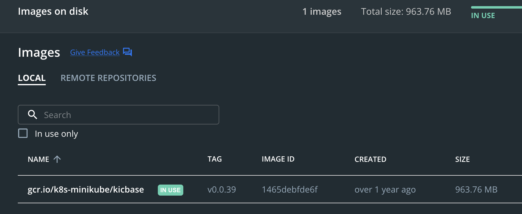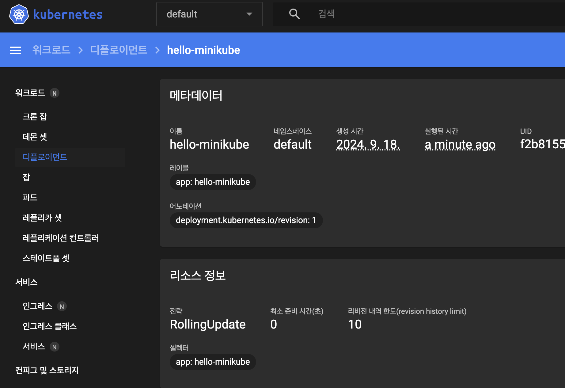 아래와 같이 도커데스크톱에서 '이미지'와 '컨테이너'에 minikube가 실행되는지 확인한다.