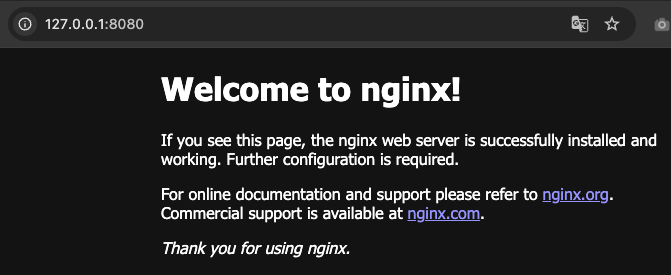 http://127.0.0.1:8080 에 접근해서 nginx가 올라가있는지 확인한다.