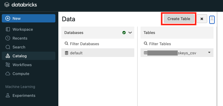 Catalog 메뉴에서 'Create Table'을 클릭한다.