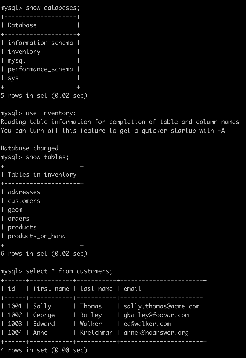 -a -k dbserver1.inventory.customers