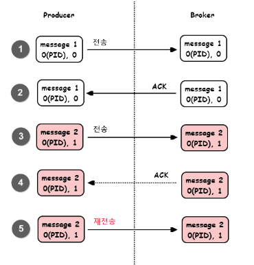 중복 없는 전송은 적어도 한번 전송 특징과 비슷하지만,