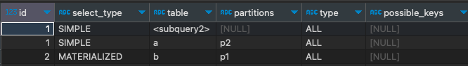 파티션을 적용하지 않은 테이블에 실행한 쿼리