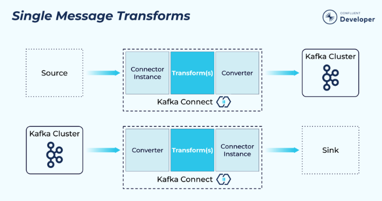 원본 커넥터에서 Kafka에 기록되기 전에 데이터를 수정하고,