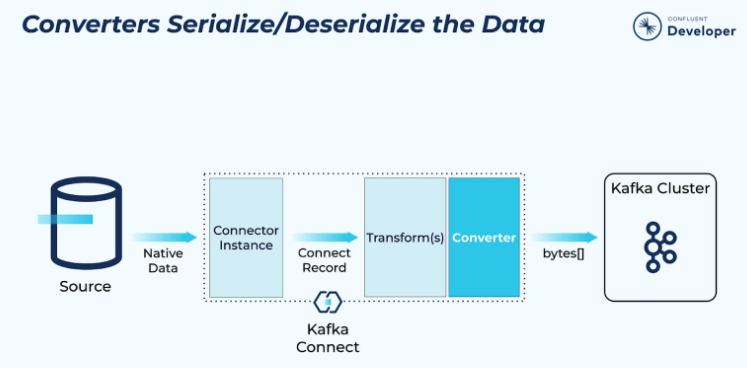 컨버터는 Kafka Connect와 Kafka 간에 흐르는 데이터의 직렬화 및 역직렬화를 담당합니다.