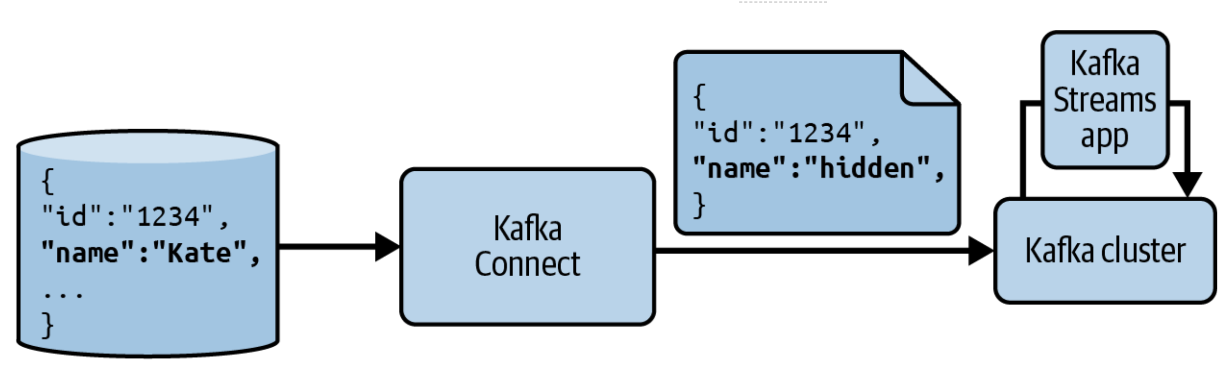 아래는 민감한 개인정보를 숨김 처리하는 카프카커넥트 예시이다.