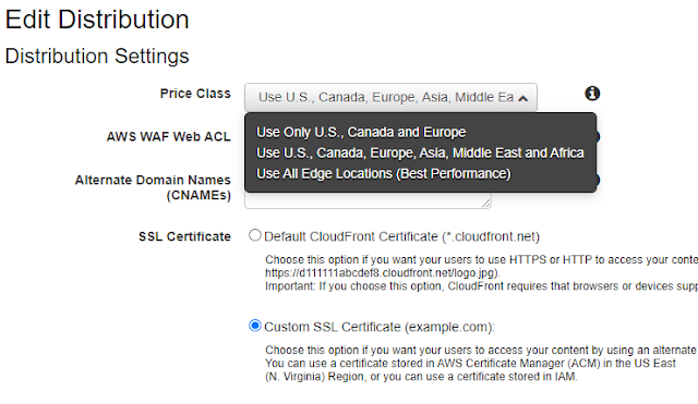 Distribution Settings에 Price Class 입력란을 보면 Class 마다 제공되는 Location과 가격이 다르다.