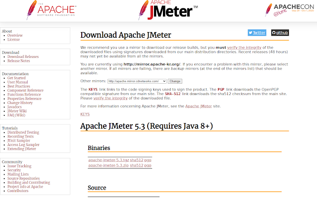 해당 URL에서 https://jmeter.apache.org/download_jmeter.cgi Binaries의 zip파일을 클릭한다.
