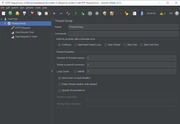 1. 좌측 약병이모티콘 우클릭 -> add -> Threads(Users) -> Thread Group