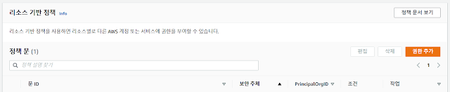 4. 리소스 기반 정책 창에서 권한 추가를 선택합니다.